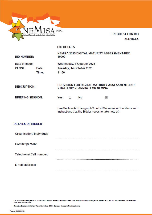 Bid Number:NEMISA/2025/DIGITAL MATURITY ASSESSMENT/REQ
