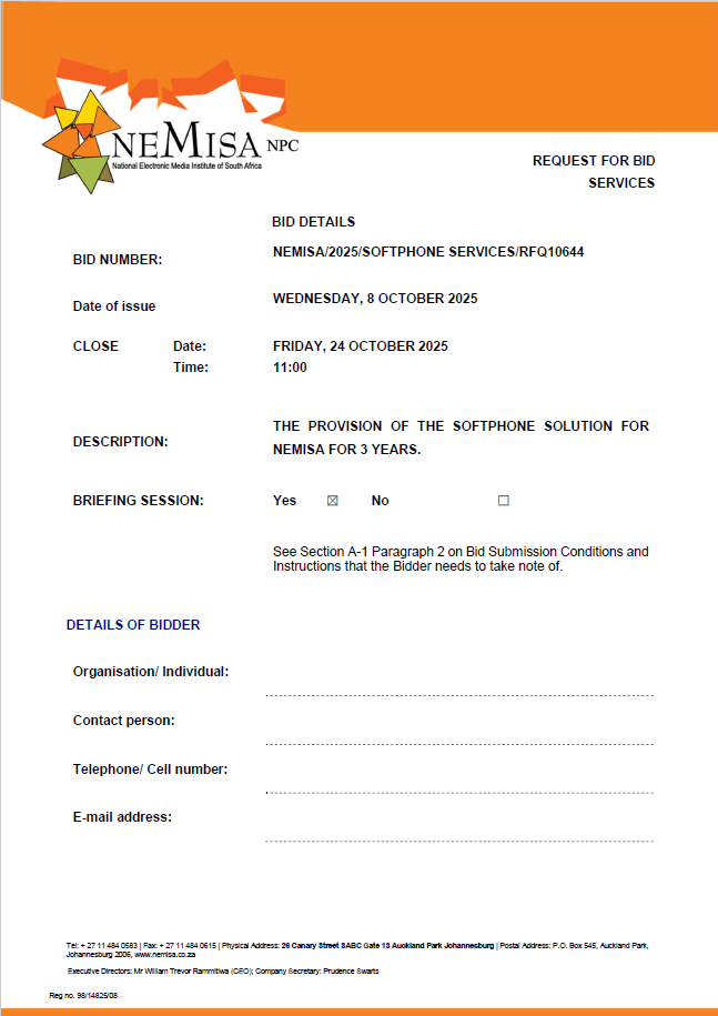 Bid Number:NEMISA/2025/SOFTPHONE SERVICES/RFQ10644